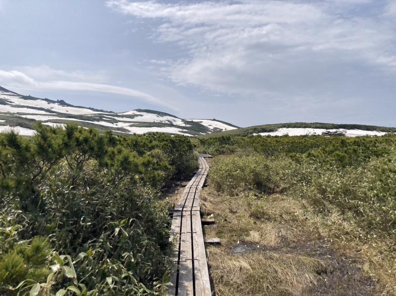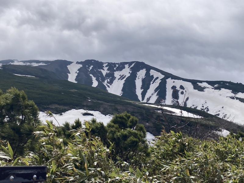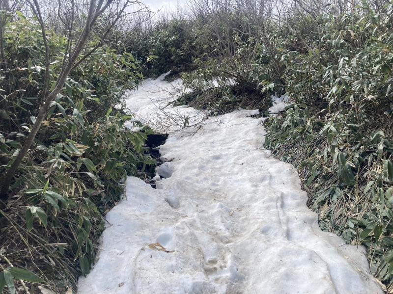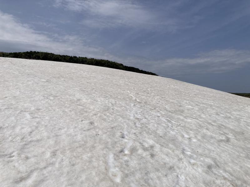 1400m付近の尾根沿いから狙っている雪渓を見上げると、