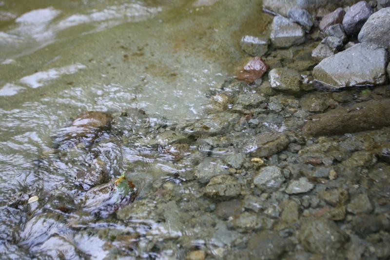 - 川沿いを歩きました。苔むしていて滑りやすかったです。