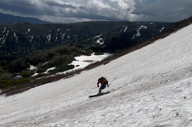そして、いい感じの斜面にたどり着いたところで滑走開始。
