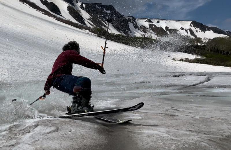 雪面の凹凸でバウンドして全身痛くなり、沼の雪解け水でビシャビシャになりながら頑張りました。