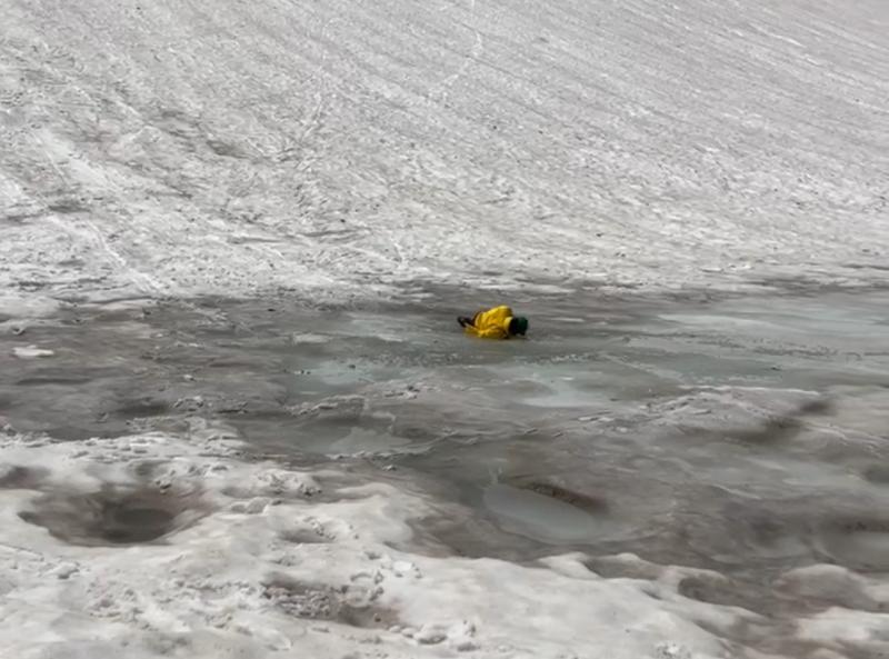 また、沼の淵に残雪があり、そこをトラバースしながら進まないといけない箇所があり、滑ったらドボン。