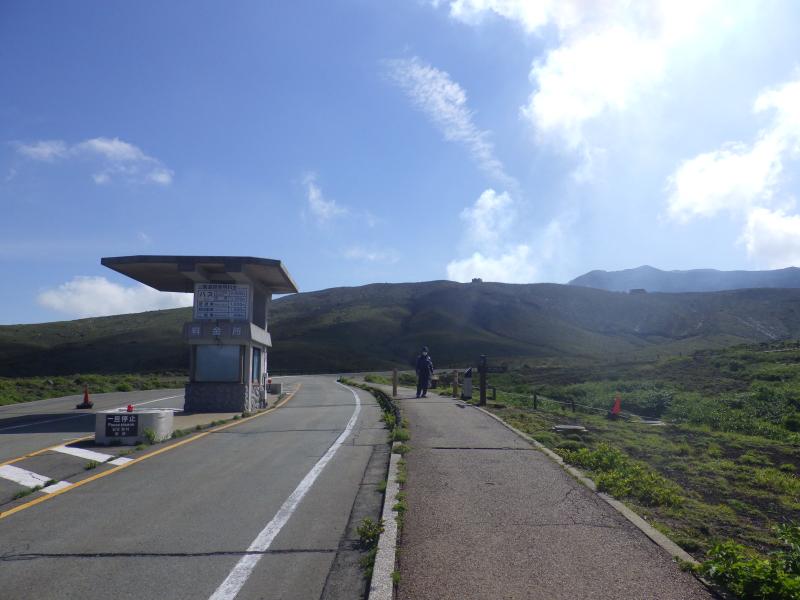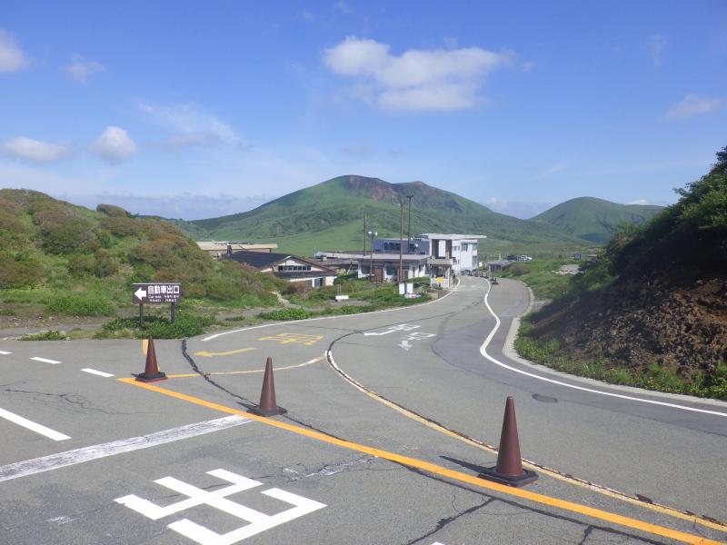 ②噴火警戒レベル2の為、阿蘇山上ターミナルが最終駐車地で、阿蘇山上道路をしばらく進んだ後、係員がいる場所で右へ迂回していきます