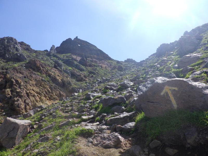 ⑨高岳東峰への登りが火山岩の登山道でガタガタしています