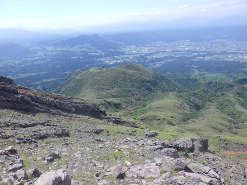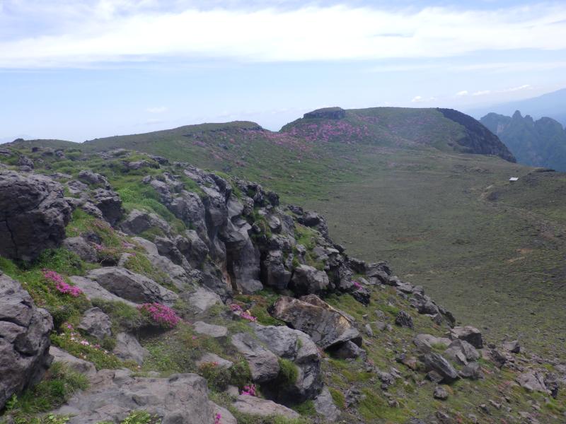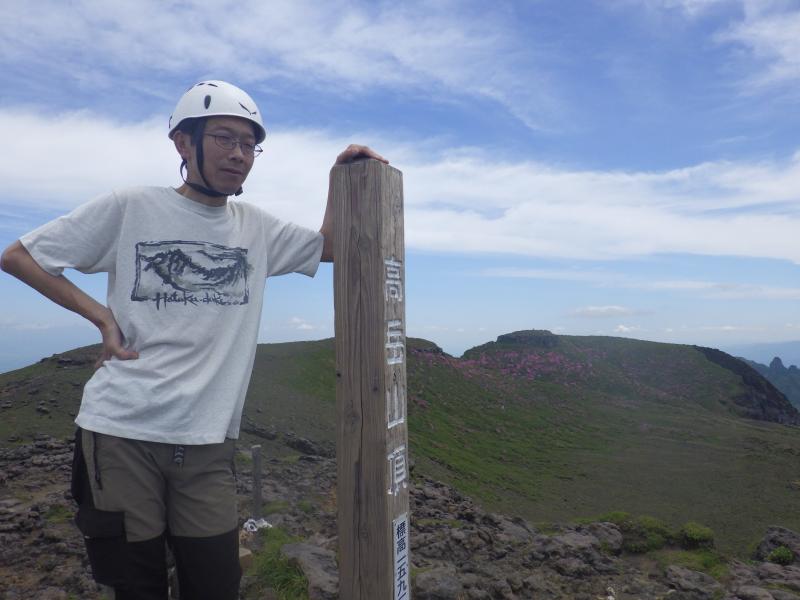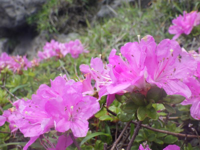 まだ時間があるので高岳西峰まで行き、天狗の舞台をもう一度眺めます。もう少し進めば、きれいなミヤマキリシマが拝めますが、今日はここで帰ります。