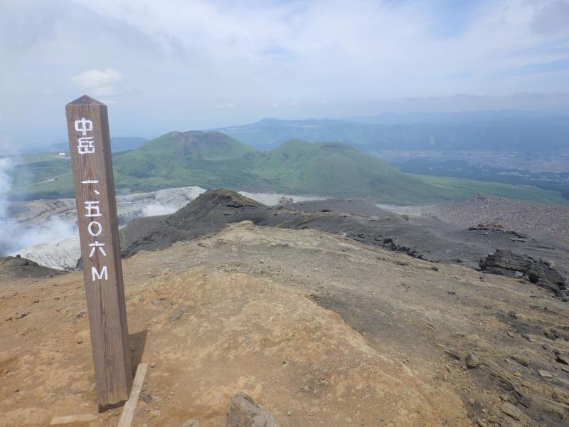 最高峰の高岳(たかだけ・1592m)、中岳(なかだけ・1506m)、根子岳(ねこだけ・1408m)、烏帽子岳(えぼしだけ・1337m)、杵島岳(きしまだけ・1326m)が阿蘇五岳と呼ばれている。近年では中岳火口で噴火活動が活発化し、規制と解除が繰り返されています。