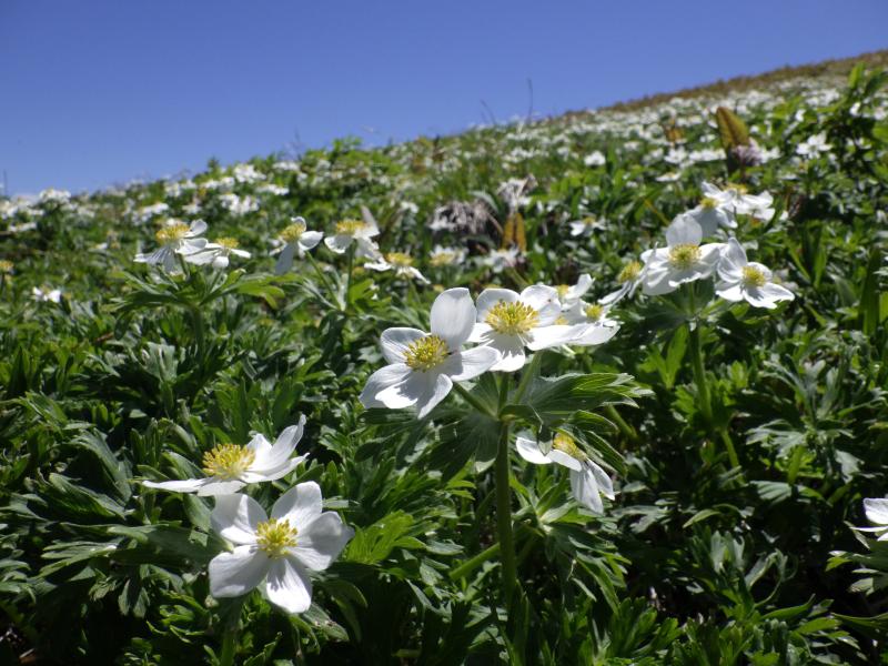 ⑯仙ノ倉山手前から笹原でハクサンイチゲのお花畑が多くなる