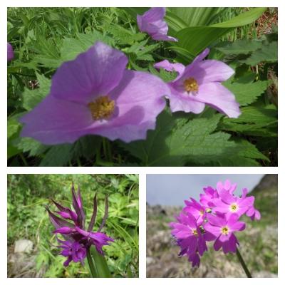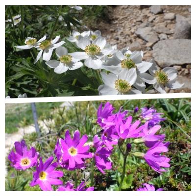 ⑦肩の小屋からしばらくはハクサンイチゲとハクサンコザクラがたくさん見られます