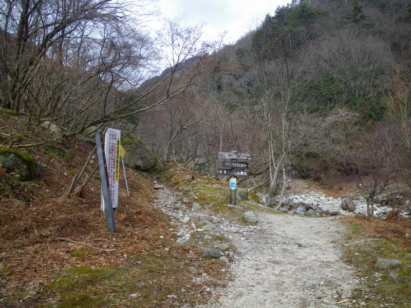 小屋からバス停までは普通の登山道でようやく樹林帯の中に突入、一部、階段の為、わりに早く林道まで下れました。林道からバス停までは以外に長かったのが印象的です。