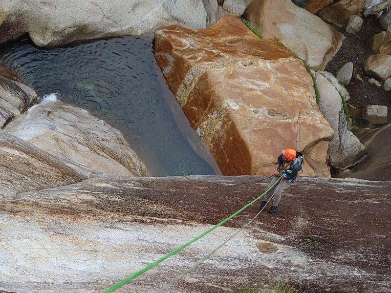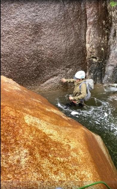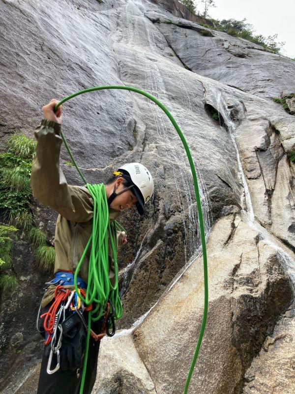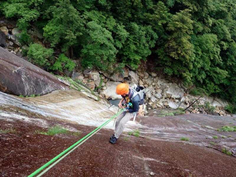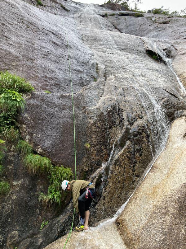 敗退した8P目終了点からまっすぐは懸垂で降りられず、大滝方向へ少しトラバースしてから下降。
