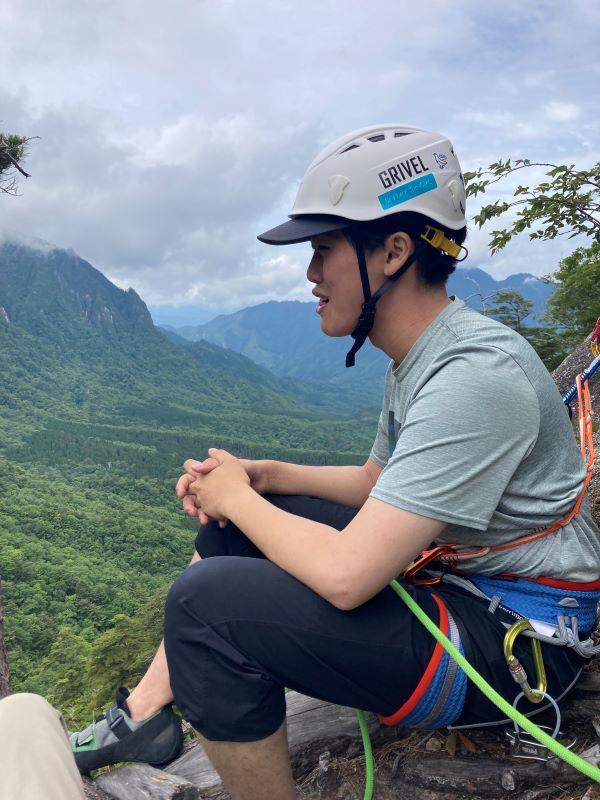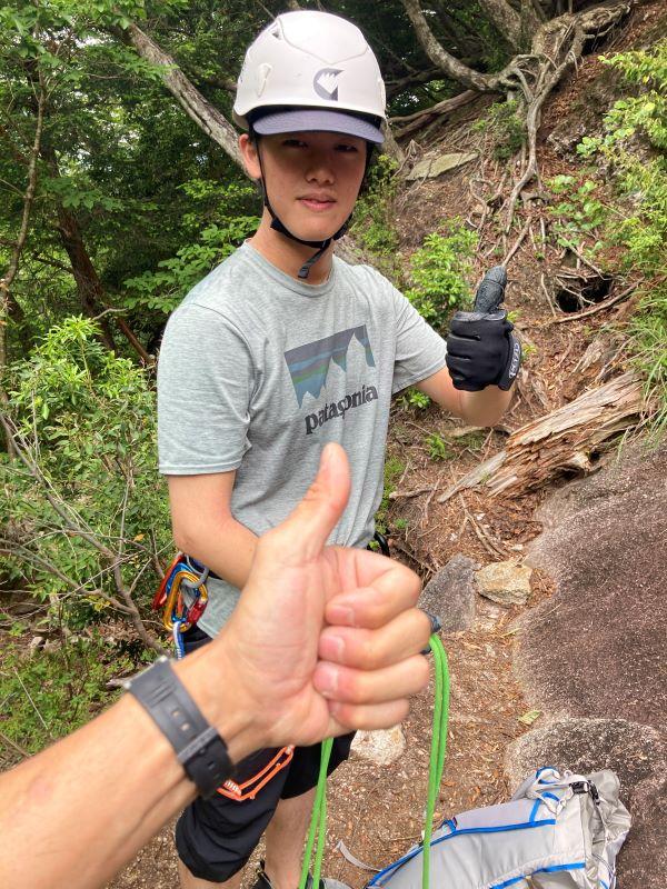 同行は宮崎大学ワンゲル部で積極的に山も岩も登っている岸本くん。