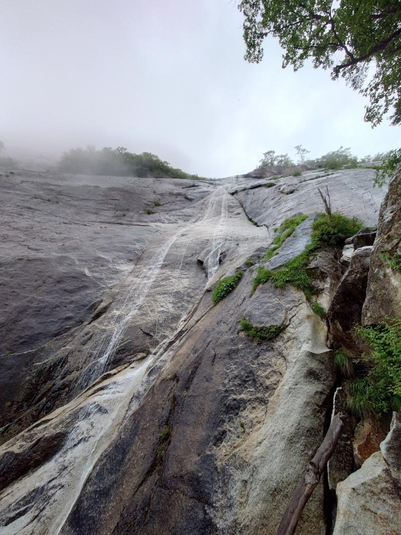 すでに雨でそこそこ体が濡れていたとはいえ、仕方なく滝つぼへ飛び込み、もれなく全身濡れて下山することになりました。