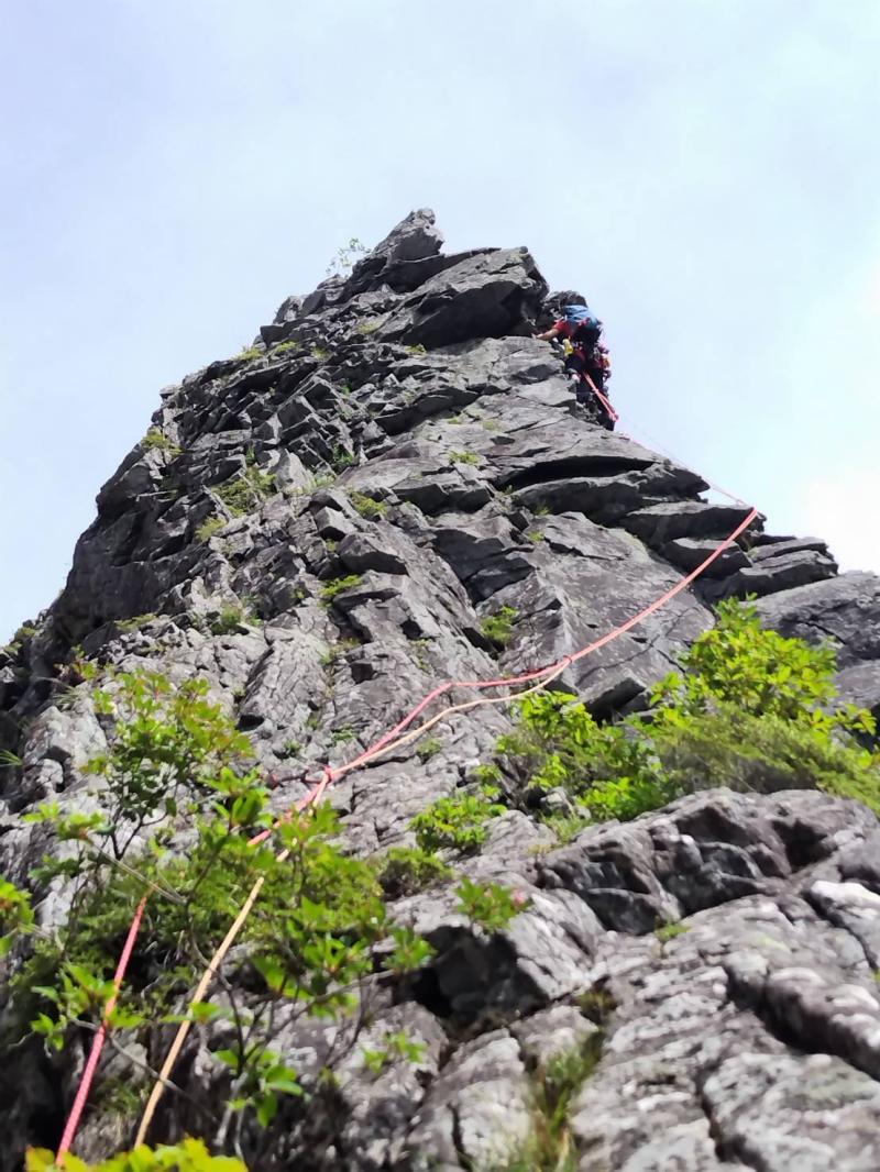 ここまでは良かったのですが引き上げの頃にはもうくったくた。3回引くと全身ぐったりでロープが伸びっ放し。リードに集中しすぎて、大事なフォロー引き上げで集中力が切れかけてしまいました。ダメダメすぎる相方です。いくら暑かったとはいえこれではシステムが成り立ちません。今回も反省点の多い山行となりました。