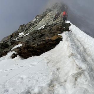 上半部は、雪稜かつ傾斜も強いので、、ピッケル、アイゼンは必須だと思いました。