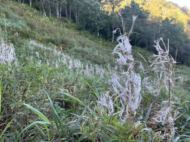 前回8月のはじめに訪れたときに綺麗に咲いていたヤナギランが綿毛になっていました。