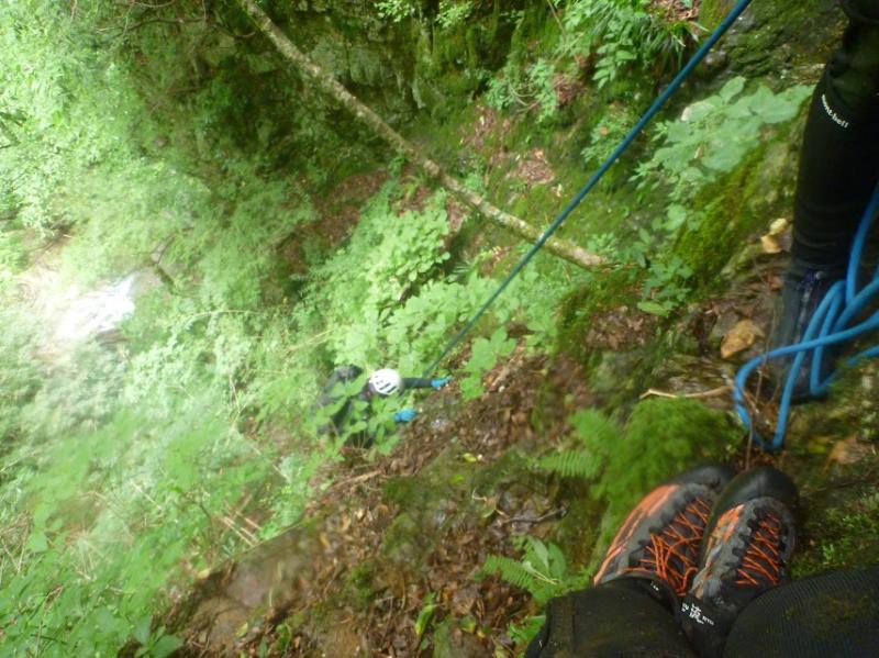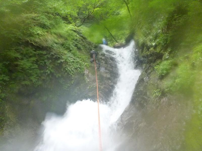 - 今回はかなりの増水ですが、登れる場所はロープ出して確保しながらのぼりました。