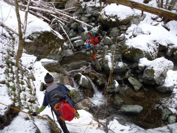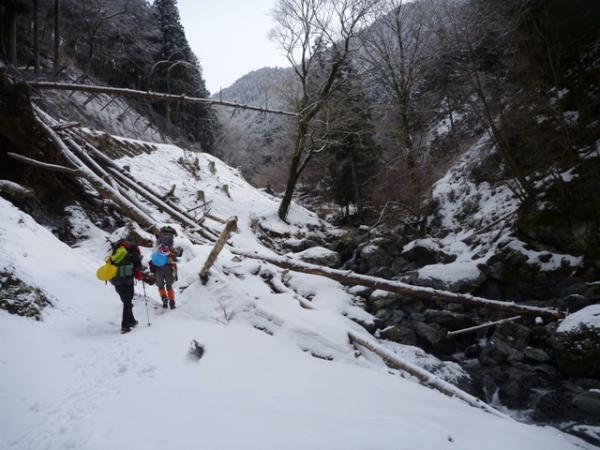 思います。渡渉があることも考えると、スノーシューやワカンでは歩きにくい