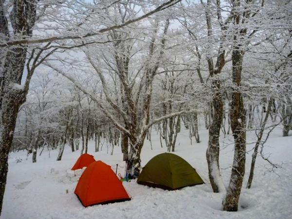 小屋の裏であれば風もある程度しのげ、快適にテントを張れました。