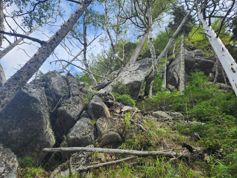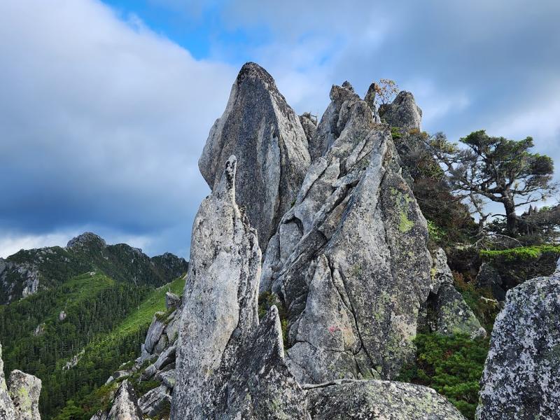 そしてまた登り返し。登っている途中で珍しく人に出くわしました。「この下りまだ続きますか?」向こうもうんざりした様子で聞いてきます。「まだまだ続きますね...」申し訳ないですが事実をさらっと伝えてすれ違います。久しぶりに人と話せたので気分が少し晴れました。岩の基部に着いてようやく景色が開けました。梯子を使っての登り下り、たまに朽ちかけた梯子もありましたが危ない箇所はありません。白い花崗岩を攀じ登りながら、最後に求めていた稜線歩きを楽しめました。
