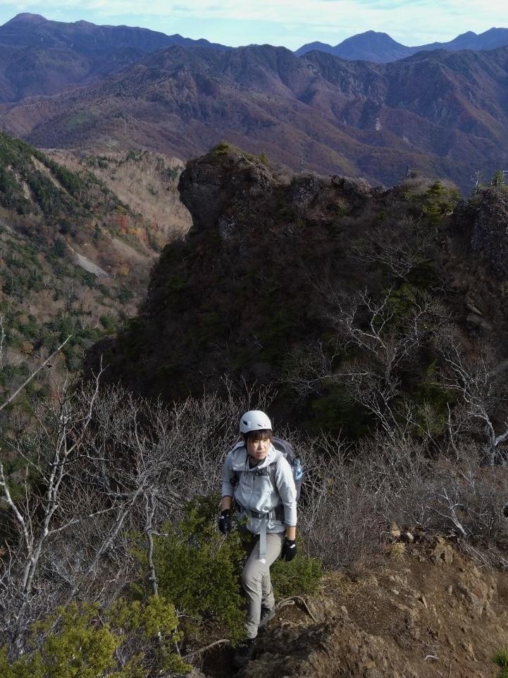 鋸山まではいくつもピークがあり、岩場のアップダウンがつづきます。怪我予防のため、ヘルメットとグローブがあるとよいです。