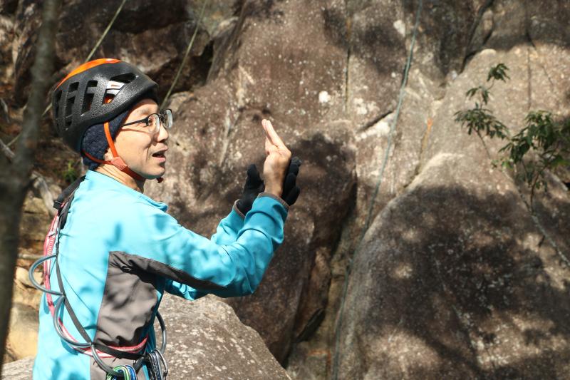 クラッシックな登り、ムーブではなく岩に体を添わせて登る。岩に引っ張られる感です。