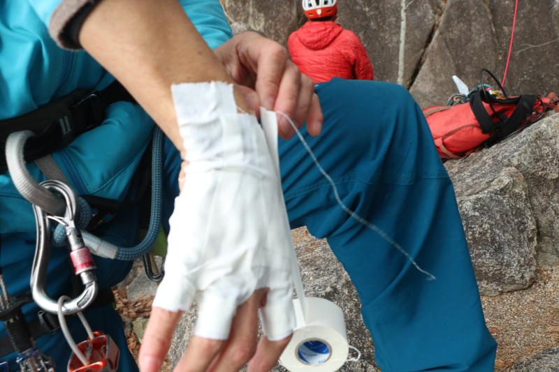 クラックグローブのないメンバーにはテーピングの方法も丁寧に教えていただきました。