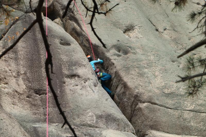トラバース後のチムニー、クラック 非常に体力を使いました。100M全力疾走ずっとしている感ありました。