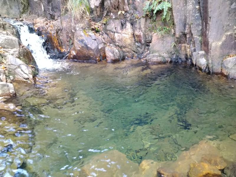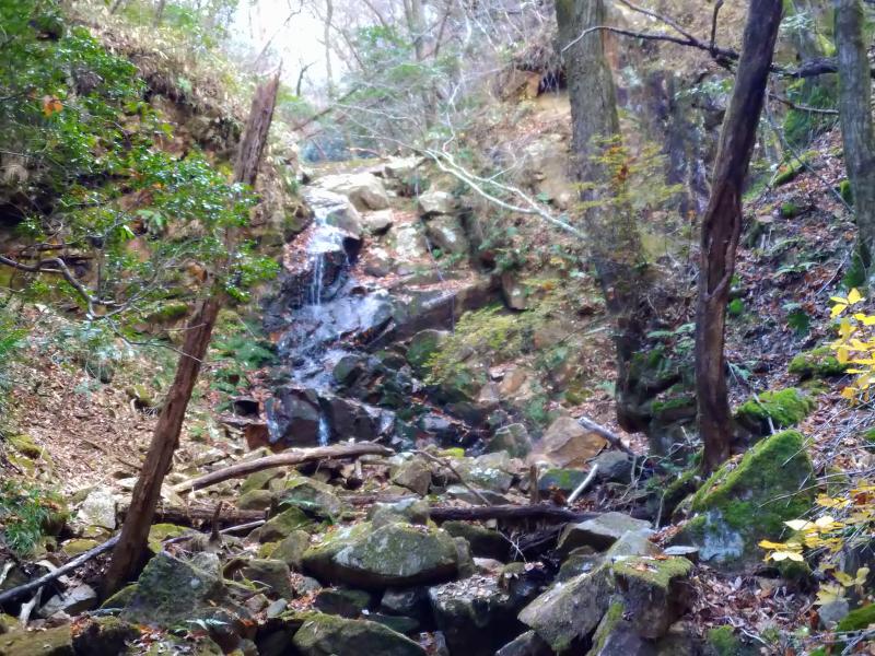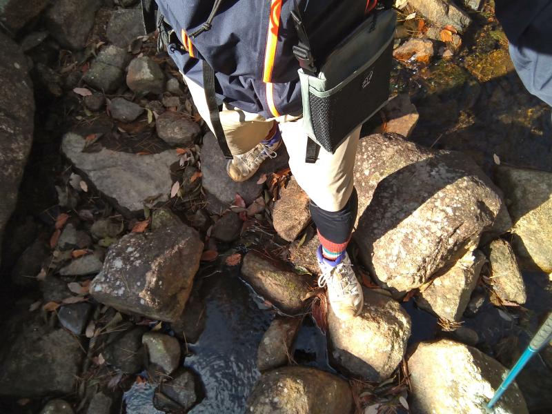 釜滝は夏であれば登れるかチャレンジしてみるのですが ちょっと今の時期は勘弁。というか2段目に取りつくのに釜を泳がなくては取り付けないので素直に左岸巻きで通過。そのあとは平凡な沢が続き、次の席は右岸から高巻き。沢に復帰したら登山道と合流したのでそこで登山靴に履き替えました。