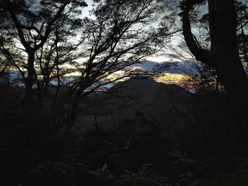 六甲山最高峰につく頃には冷たい西風が吹き、日も隠れてしまい気温が低下し寒さが厳しくなりました。お昼も食べずにひたすら歩いていたので小休止をしてから下山。ですが間もなく16時。ヘッドライトを準備して有馬温泉へ向けて魚屋路を下っていきます。観光案内でも出ていた登山ルートなので整備はされているだろうと思っていたのですが とても歩きやすく 石楠花谷登山道と比べたら高速道路。ぐんぐんと下っていけました。道幅も広いところが多く、明瞭で案内もあるのでナイトハイクで歩くこともむつかしくないでしょう。