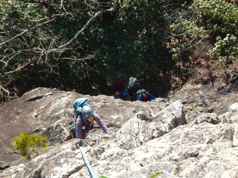 東稜を5パーティに分かれて登りました。途中少しトラブルがあり