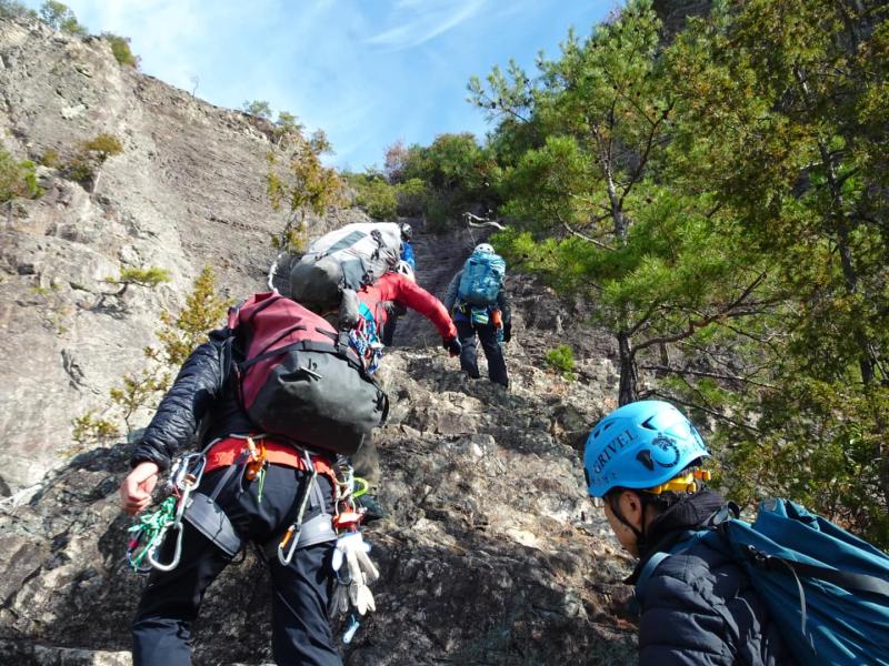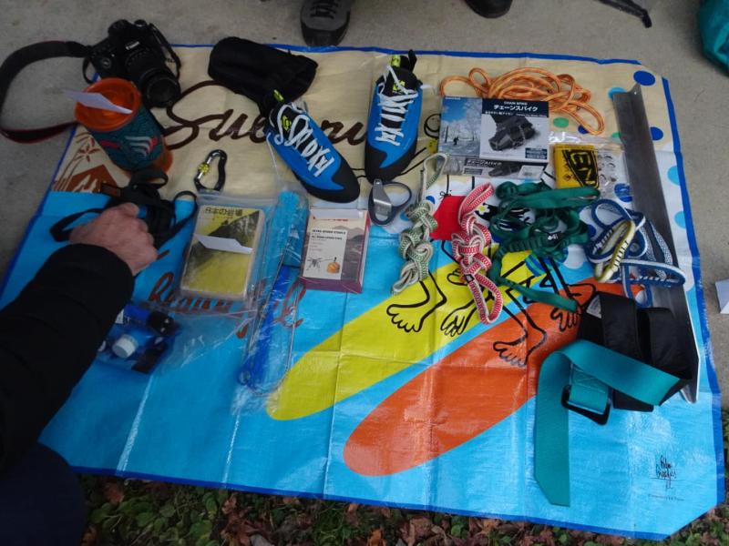 ◎ビレイ中等の防寒着 ○クライミングロープ(シングル60mまたは50m) ○スリング各種数本 ○クイックドロー若干数○アルパインヌンチャク