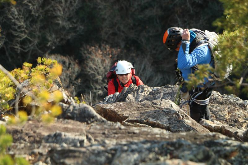 トップアウトからの絶景がたまりません。ここからもフィックスで確保して安全地帯まで岩稜を歩きました。