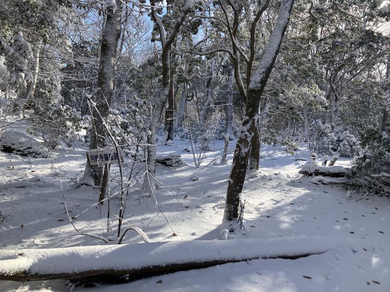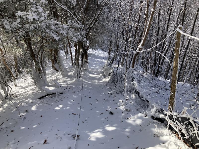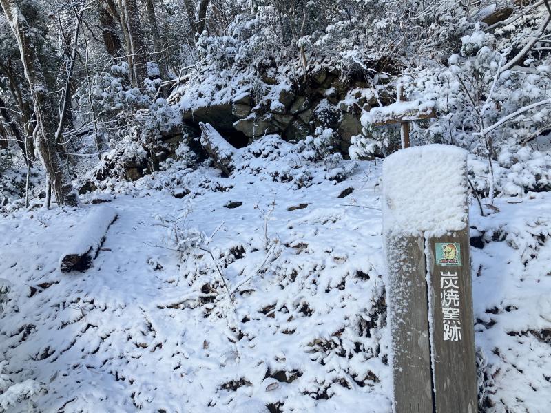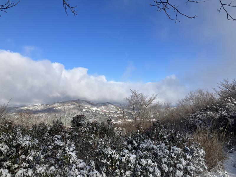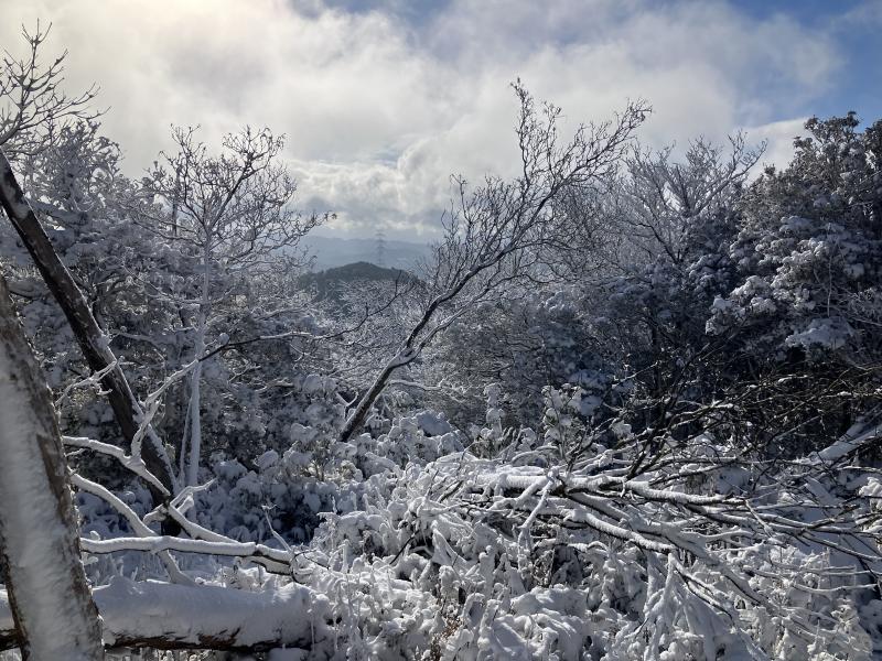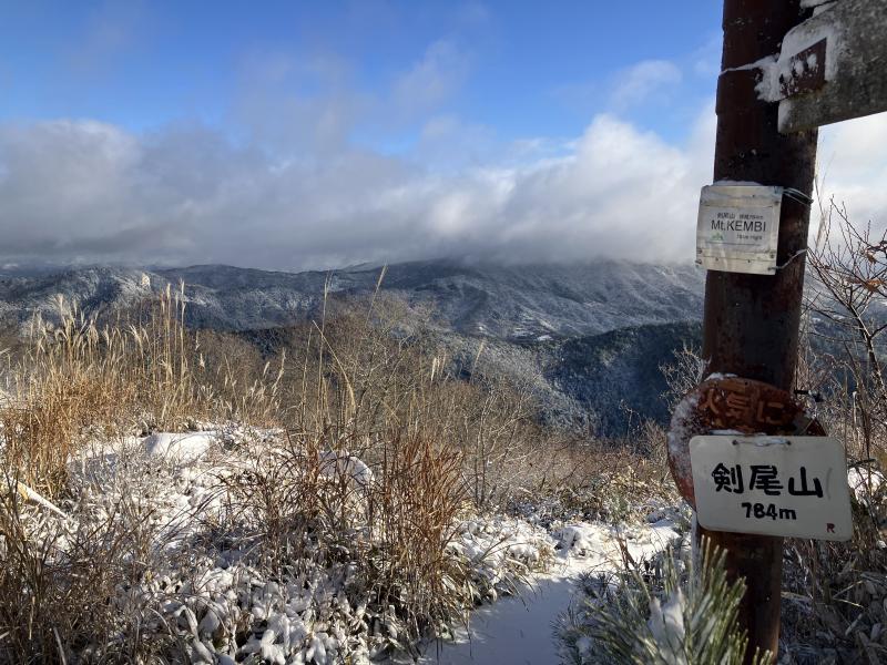 書き忘れていましたが、スタートから結構な雪が降っており、月峯寺跡では止みはじめ、剣尾山山頂に着く頃には陽が射してきました。山頂は景色も良く、半国山、深山、大船山が見えました♪