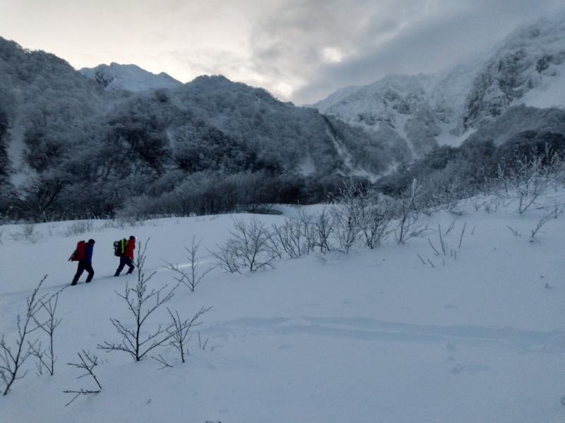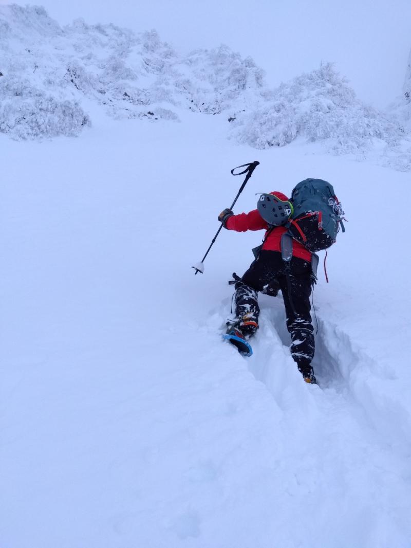 西稜とりつきまで ラッセル大会でした。スノーシューないと倍の時間でした。