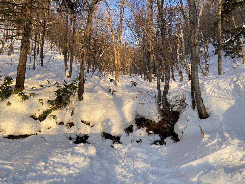 雪の残っているポイントを狙いながら下山しました。