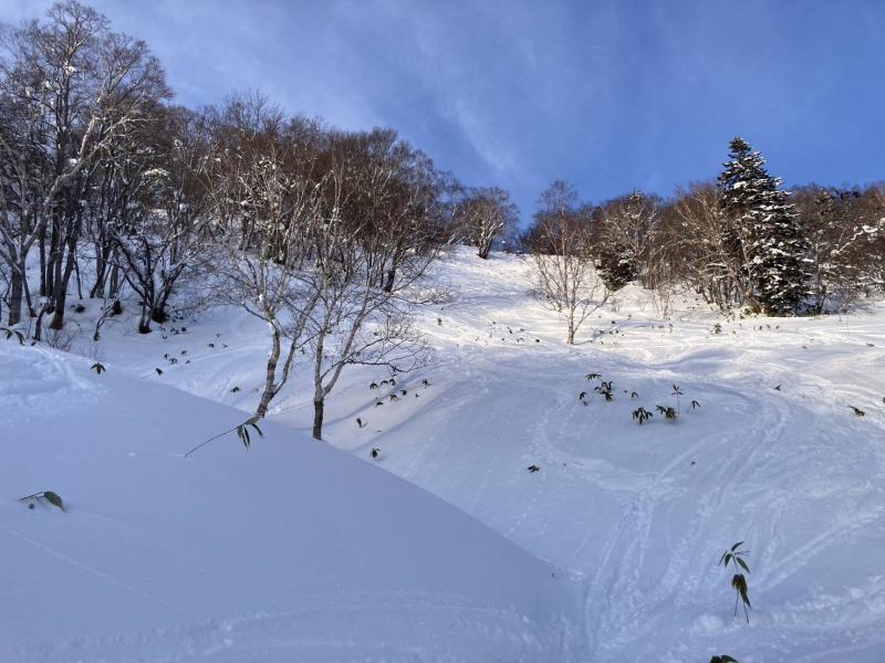 そうなると山頂直下のオープンバーンは