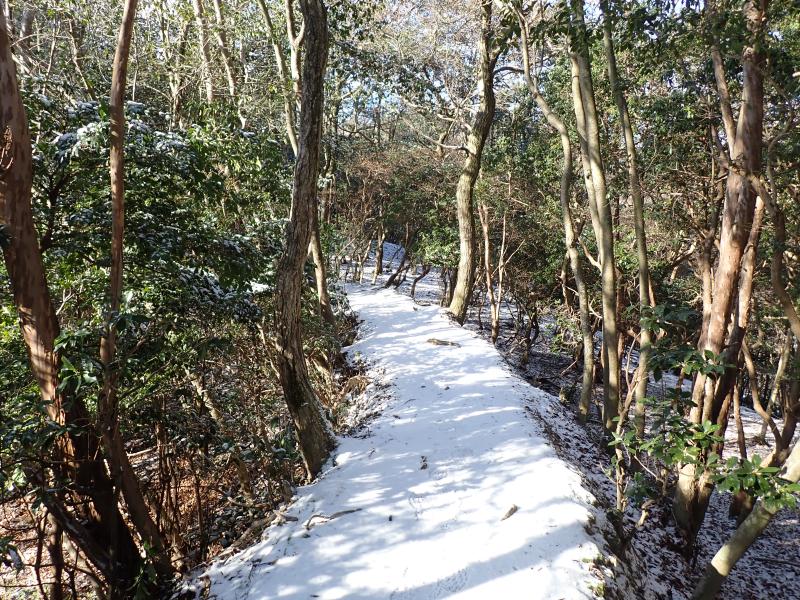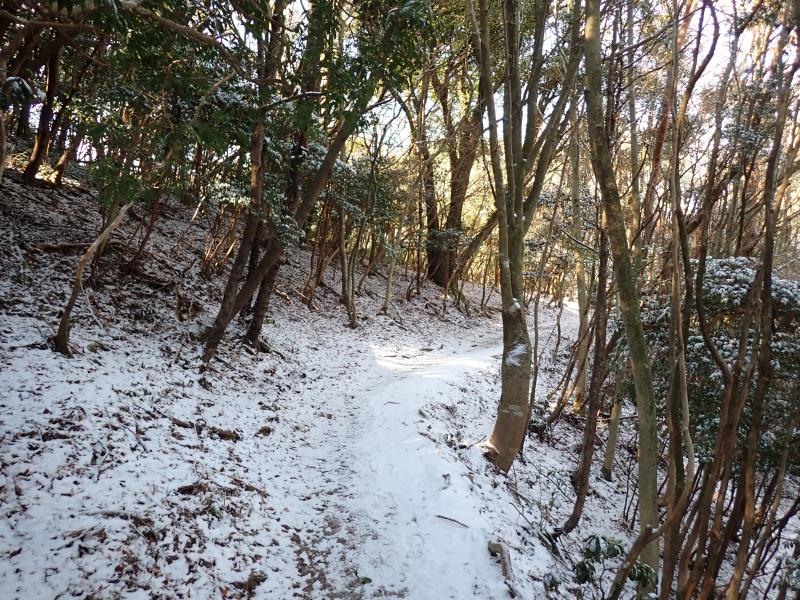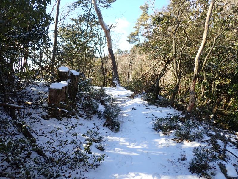 気持ち良い山路を歩けました。山頂付近は陽当たりがよく、雪は融けていました。帰路は杉谷ルートで下山しましたが、林道が凍っておりましたので、ご注意ください。