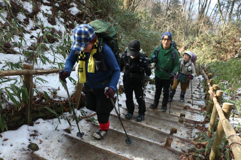 - 8合から アイゼン とストックを使って 登りました。カリカリに凍っておりました。