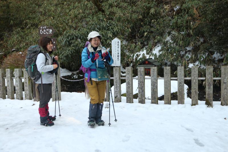 八号目からは凍っていました。アイゼンを装着してストックも先ゴムを取っていただきました。