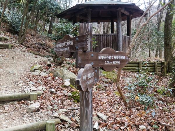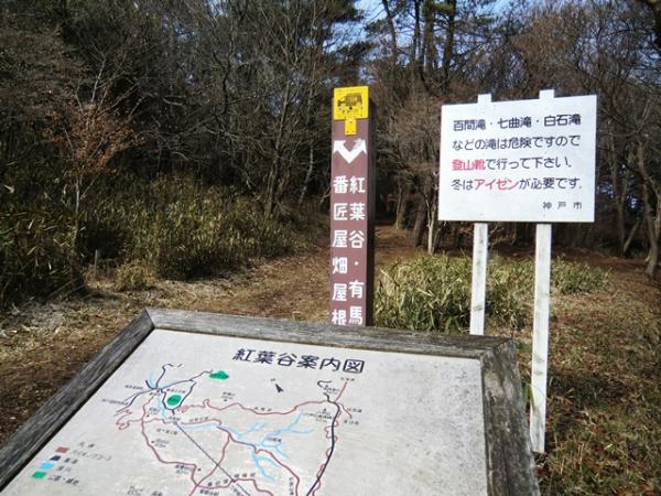 - 六甲有馬ロープーウェイ有馬温泉駅(1:00)→七曲滝(1:00)→極楽茶屋跡→(0:15)ロープーウェイ山頂駅