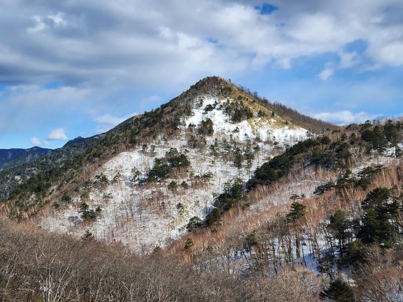 雁峠からは荒川・多摩川・富士川の分水嶺の山、笠取山がごく近いです。時間に余裕があればそちらへも行きたかったのですが、何せスタートが10時半近くだったので雁峠へ到着したのはちょうどお昼。穏やかな雁峠からピラミダルな笠取山を眺めてすぐに北上しました。