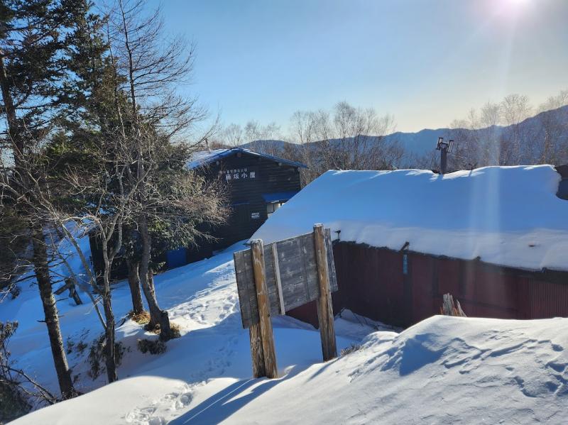 ◯雁坂小屋は冬季小屋が開放されており利用料2000円を入口の料金ボックスに入れます。玄関扉に鍵はかかってませんが凍結して開きにくかったです。右側の窓を開けて入りました。外トイレは1ヶ所のみ使用可能。水晶山の稜線から向かいましたが踏み跡は無く腰まで潜る場所もありました。雁坂峠まで出て下降した方が楽に辿り着けます。