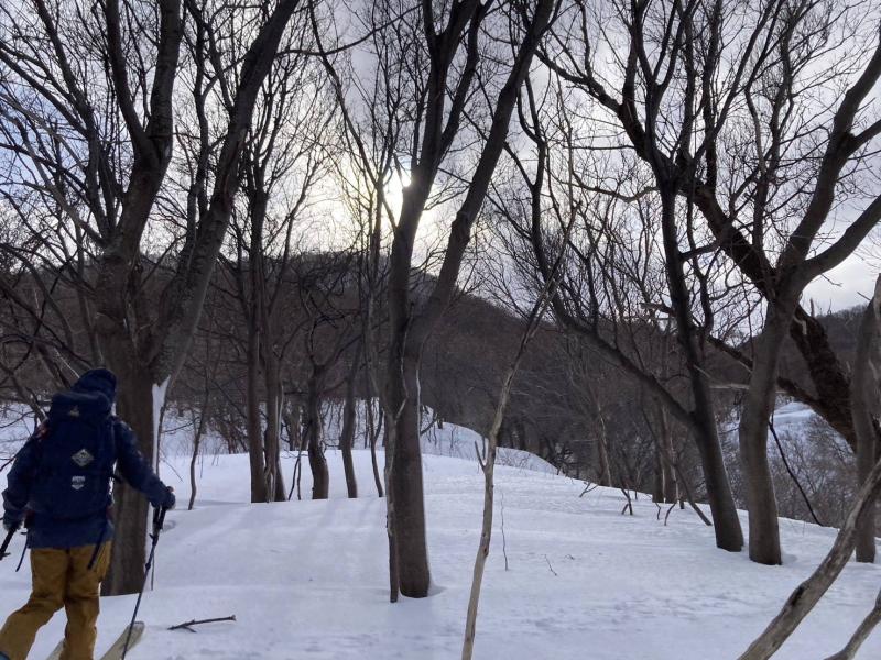 山頂からは一気に急斜面を滑り降り、