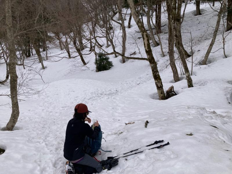 - 登山口から 積雪 五合から踏み抜きあり