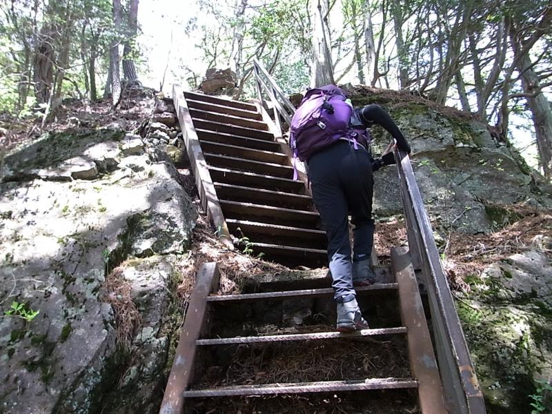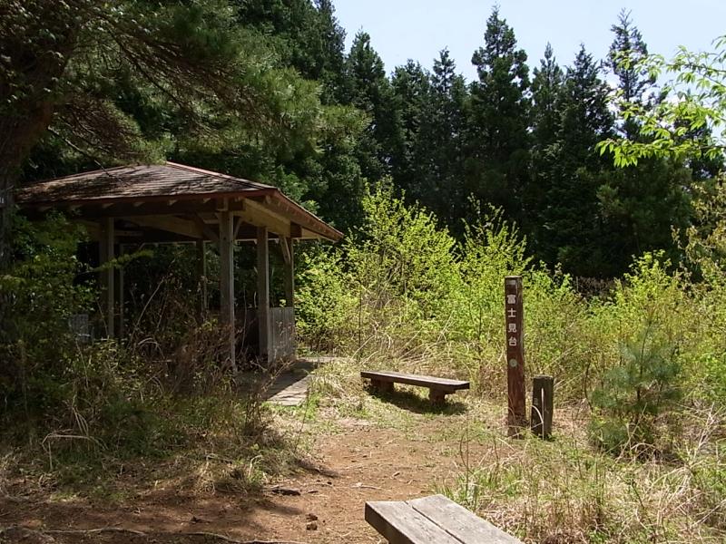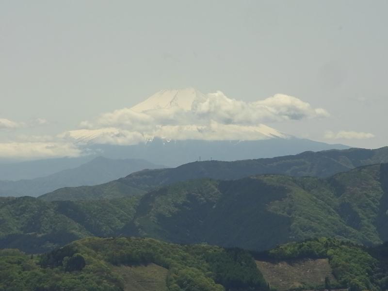 しばらく歩くと左手に綾滝が現れ、ここからつづら岩までは急登です。つづら岩を過ぎると「悪い登り」の看板が出てきて急な階段とか岩場とかが続きますが、滝の周りより歩きやすいです。開けたところに出たら富士見台で、休憩にちょうどいいベンチやテーブルがあります。この日は富士山がよく見えてとてもきれいでした。富士見台は大怒田山の山頂(1054m)にもなっています。
