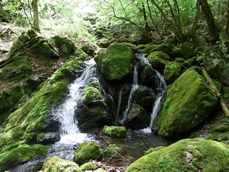 ここから大岳鍾乳洞への道は歩きやすいのですが、大岳山との分岐から先は沢筋を歩く急な道もあるので大滝まではすべらないように注意しましょう。大滝から先は渓谷になっていて、新緑と迫力のあるちいさな滝の連続で、すばらしい眺めでした。大岳鍾乳洞の先はバス停まで舗装路を歩きます。大岳キャンプ場もかなり人がいてにぎわっていました。