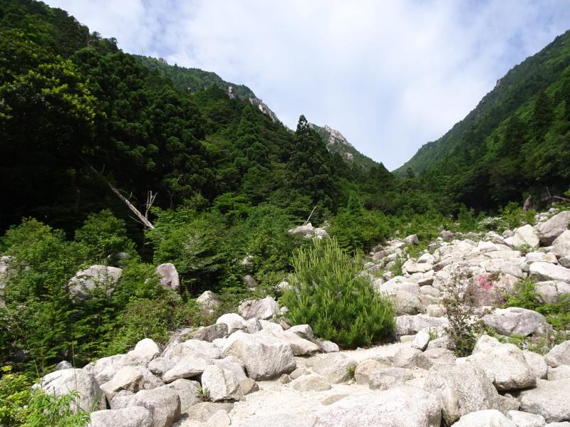 川を渡渉する手前で登山道を外れて、バリエーションルートへ入ります。