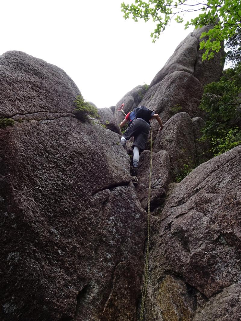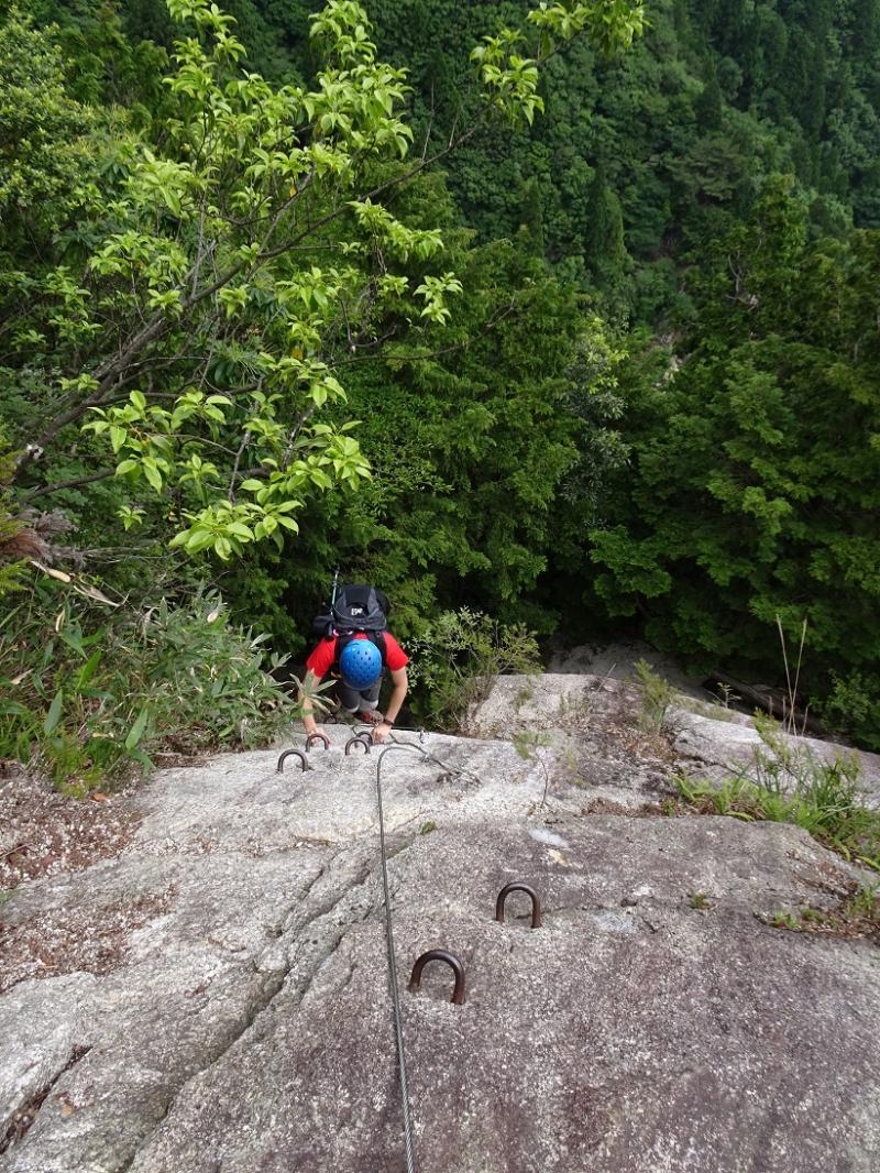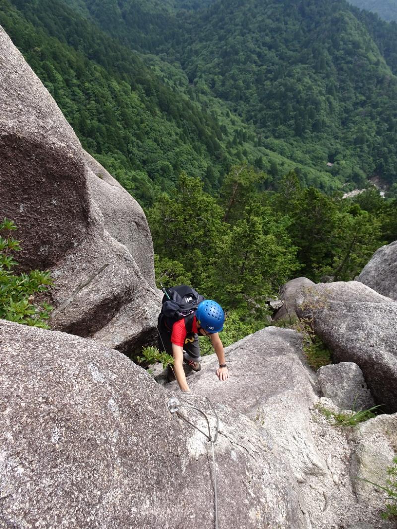 今回は、クライミングの経験者でしたので、ロープでの確保はしませんでしたが