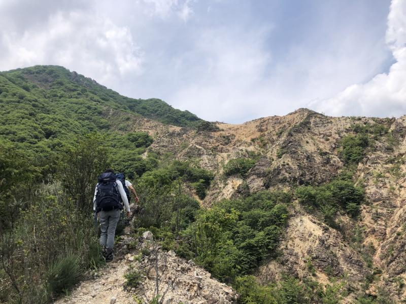 スタートから岩稜と脆い岩肌で樹林帯に入るまで気か抜けません。