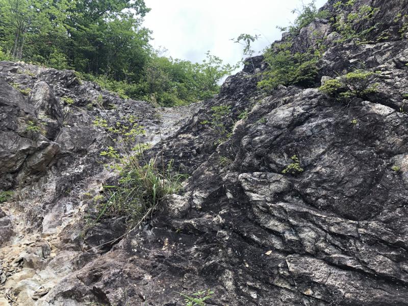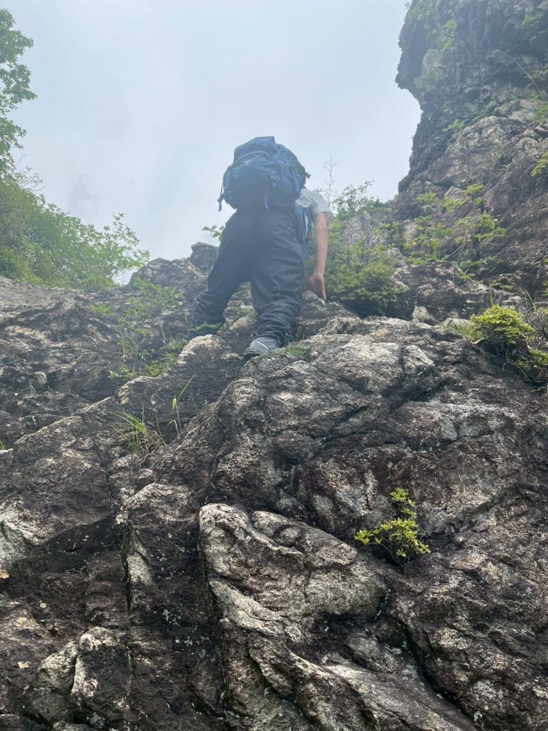 登り始めから足元が悪く岩が脆く崩れやすいです。