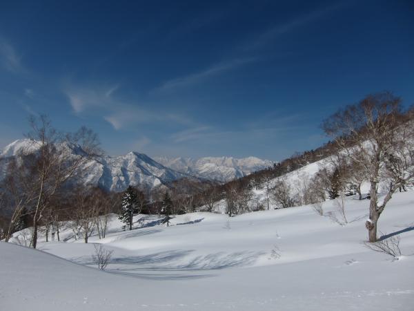 南向きの斜面のため、晴れると雪は重くなりますが展望は良いです。